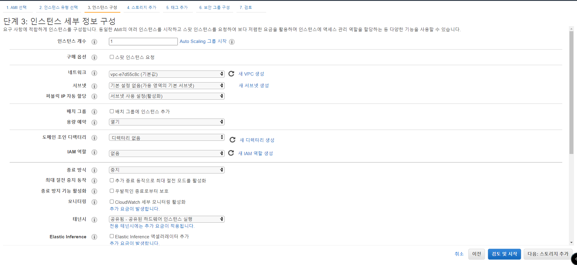 인스턴스 개수를 설정할 수 있는데 1개로 설정하면 컴퓨터 한대만 만드는 것입니다.