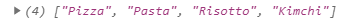 starterMenu: ['Focaccia', 'Bruschetta', 'Garlic Bread', 'Caprese Salad'],