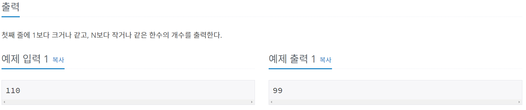 하지만 132 의 경우 2 - 3 != 3 - 1 이므로 한수가 아닙니다.